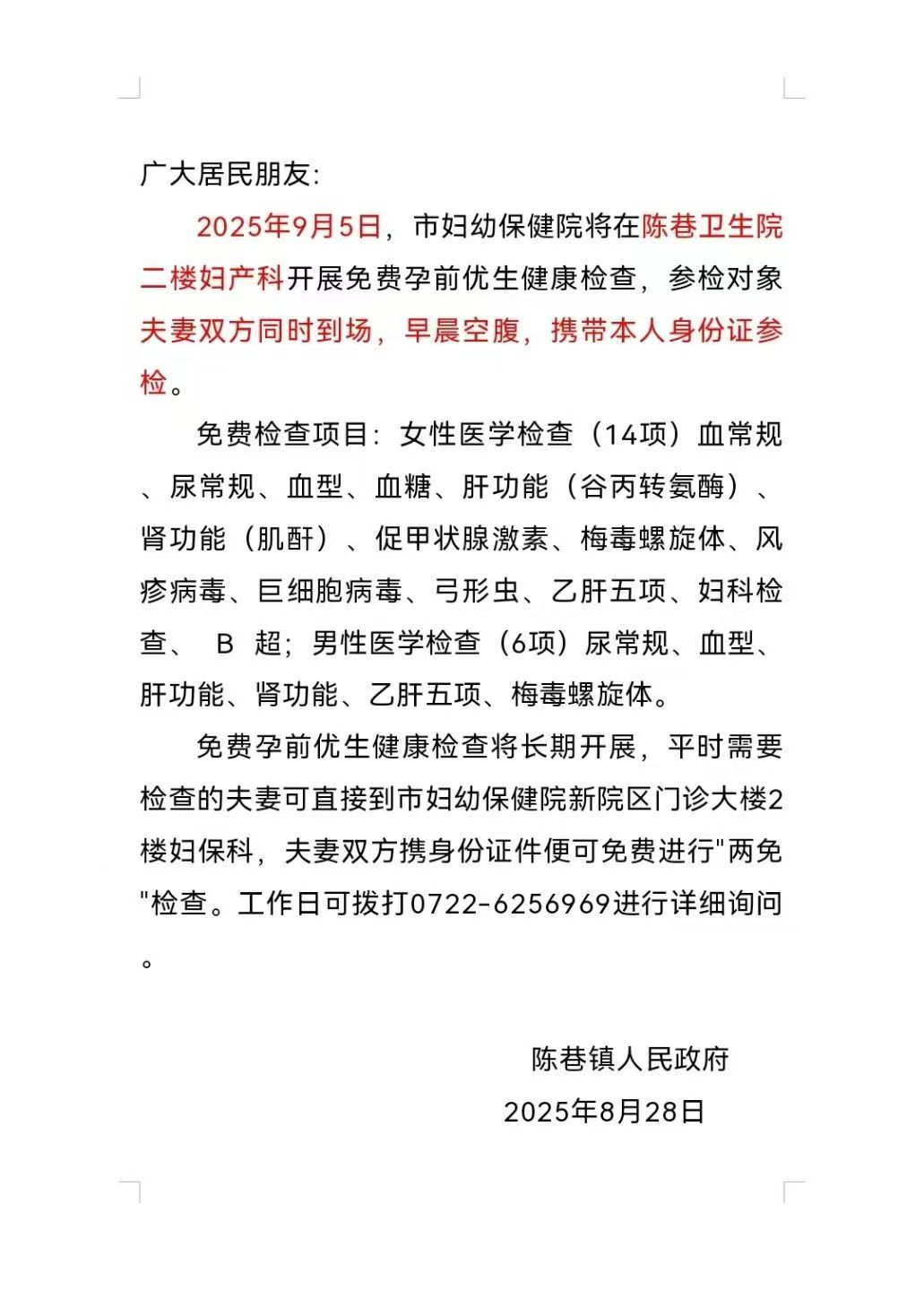 免费孕前优生健康检查