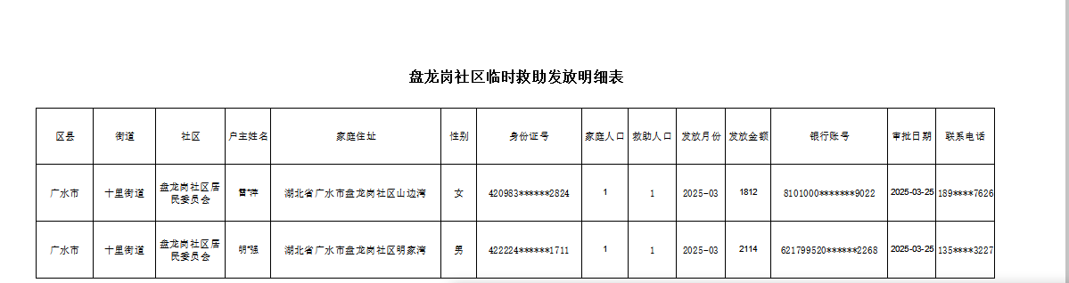盘龙岗社区2025年临时救助发放名单
