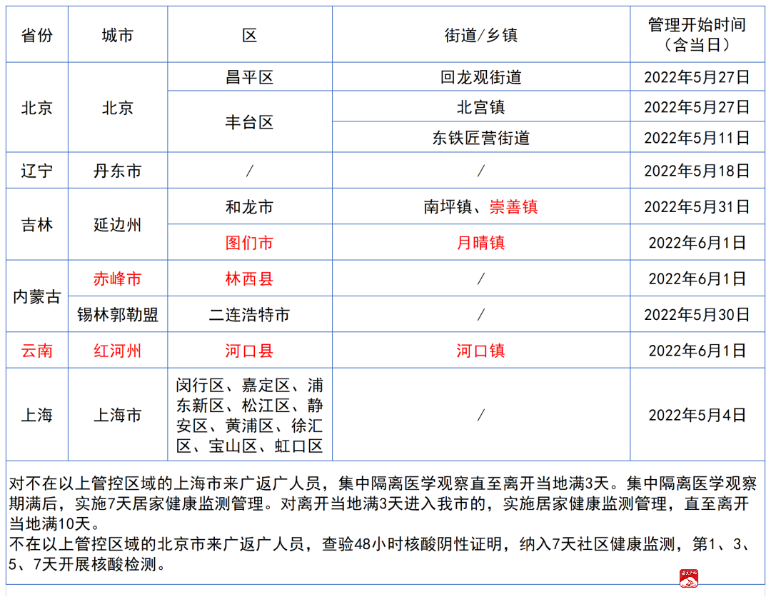 国内重点地区人员健康管理措施 (6月8日19时更新)