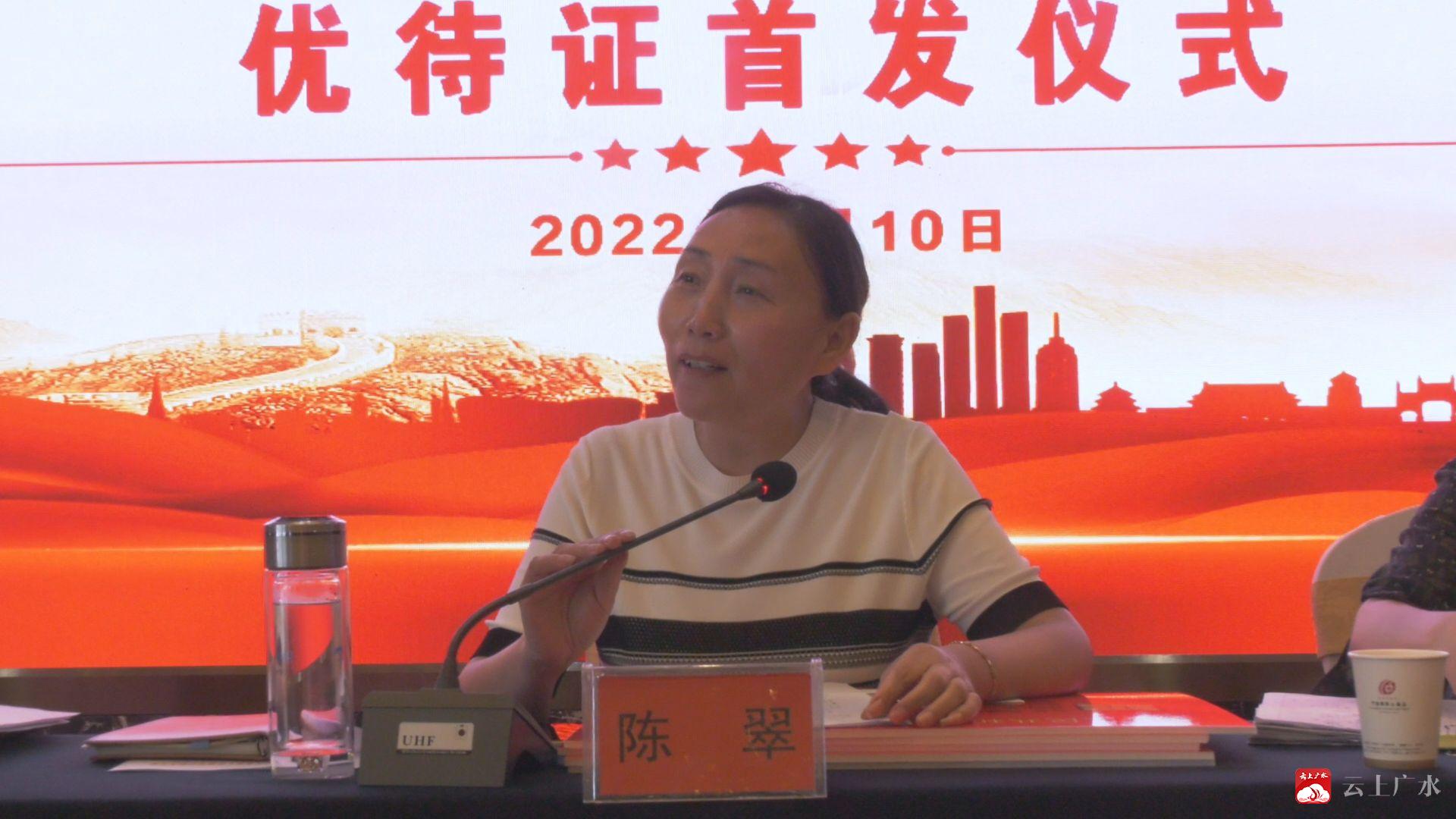 副市长陈翠为首批退役军人代表颁发了优待证,并表示祝贺。陈翠指出,此次为退役军人制发优待证,是践行习近平强军思想的具体体现,是落实退役军人保障法的具体举措,是构建退役军人荣誉体系的重要内容,也是退役军人服务保障管理的现实需要。全市各级退役军人事务部门要切实提高认识,认真统筹谋划,全面动员部署,扎实推动落实,切实把党中央和习近平总书记给予退役军人的至高荣誉和莫大关怀落细落地。要突出宣传引导,在全市范围内开展形式多样、群众喜闻乐见的宣传活动,让全社会知晓退役军人优先优待的政策规定,在全社会营造优待、尊崇退役军人的浓厚氛围,切实增强退役军人荣誉感、归属感、获得感。