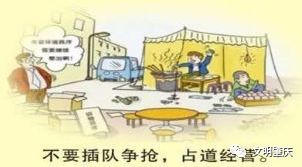 九要群策群力、维护市容,不要占道经营、乱停乱放。
