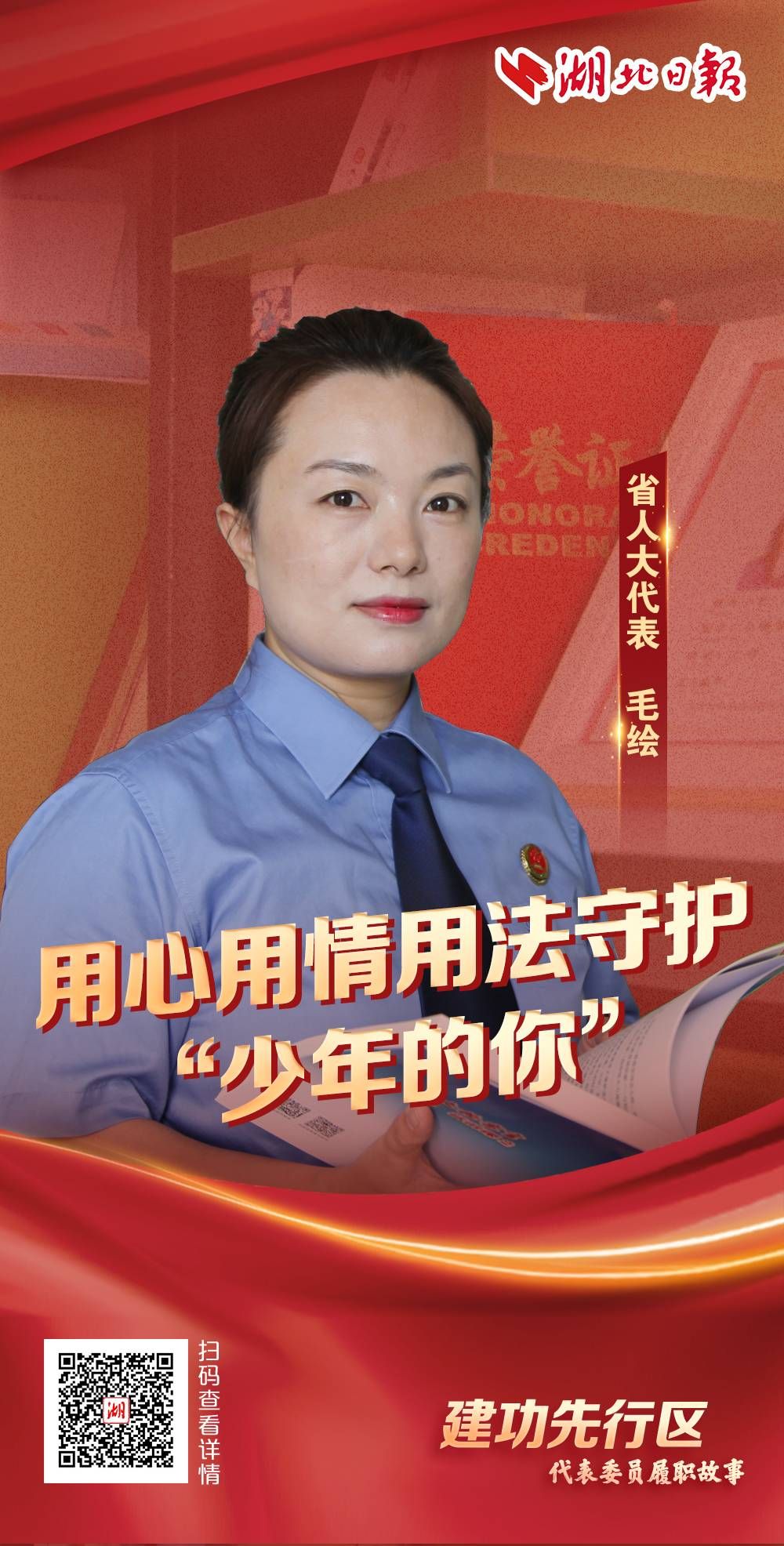 在2023年毛绘作为省人大代表履职的第一年里,她依托“慧姐工作室”未成年保护平台建起人大代表联络站,通过融合履职,用心用情用法更好地守护“少年的你”。