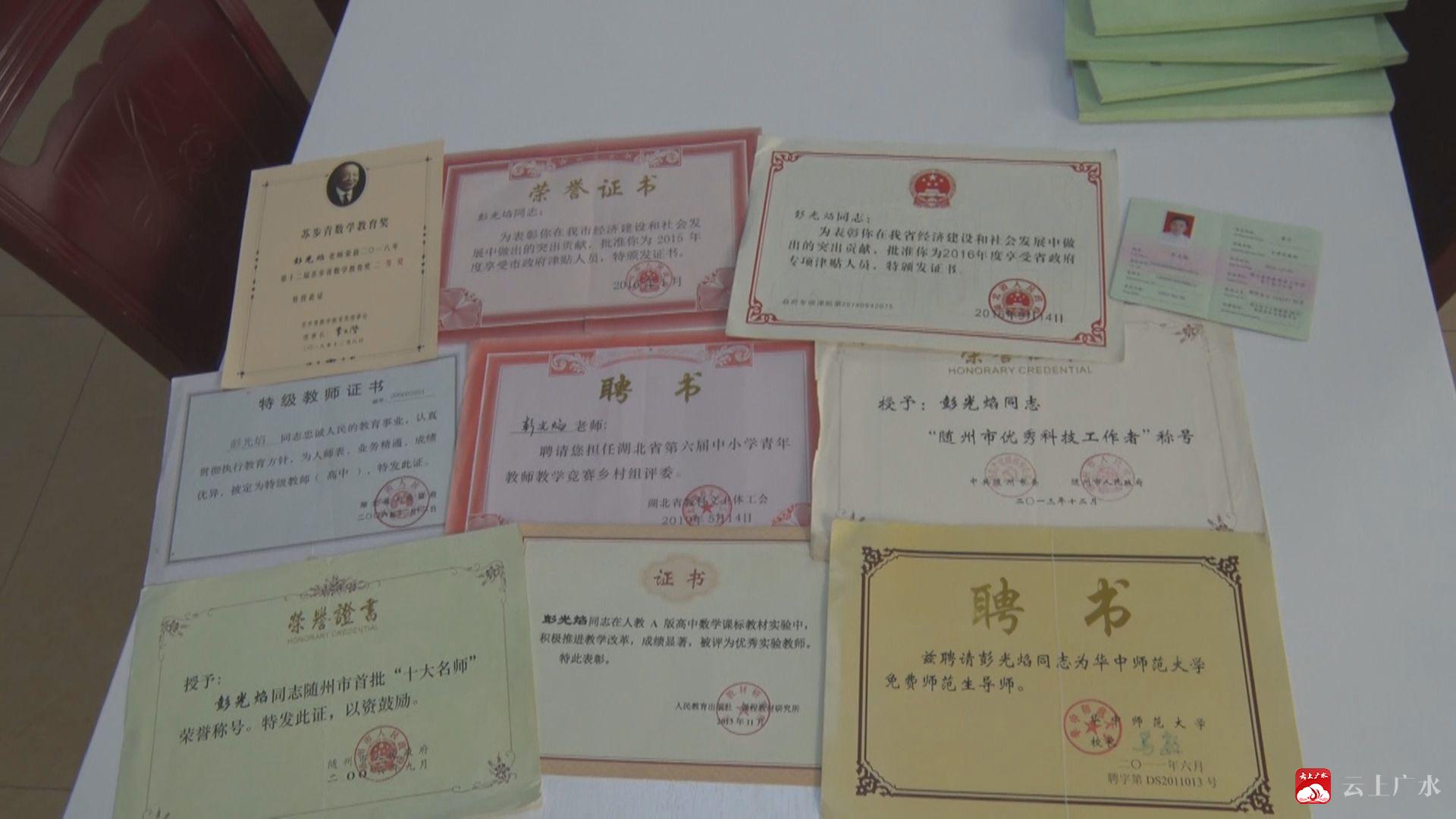 付出总有回报,从教的32年里,他先后被评为模范班主任、教科研先进工作者、广水市十佳学科带头人、湖北省优秀中学数学教师、随州市中小学学科带头人、广水市名教师、随州市首批“十大名师”、湖北省教育科学研究学术带头人、省级骨干教师、湖北省第七批特级教师、新课程教师培训优秀学员等荣誉称号。今年被评为随州市首届教育名家。