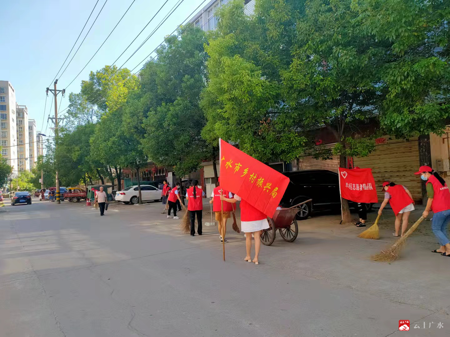 9月10日,市乡村振兴局、湖北银行广水支行、应办东关社区三家单位共同组成志愿服务工作队,在社区责任路段打扫卫生,以实际行动助力我市创建国家卫生城市。