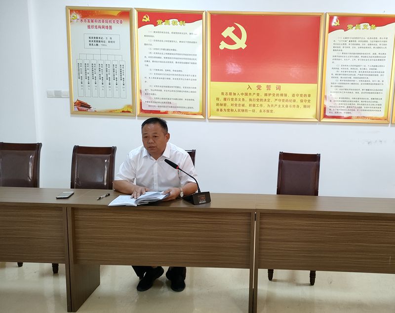 为充分发挥先进典型的示范引领作用,深化“我为群众办实事”活动,2021年9月15日,广水市发展和改革局开展了“学习榜样,致敬脱贫攻坚奋斗者”支部主题党日活动,活动邀请了市发展和改革局党组成员、郝店镇铁城村村党支部书记叶国安同志来为大家讲党课。