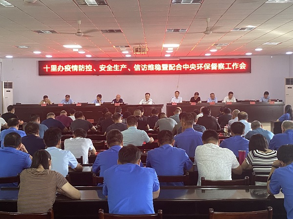 9月16日上午,十里街道办事处在5楼会议室召开疫情防控、安全生产、信访维稳暨配合中央环保督察工作会,全体国家干部、村(社区)办直部门负责人、企业负责人参加会议。十里办事处主任李扬主持会议。