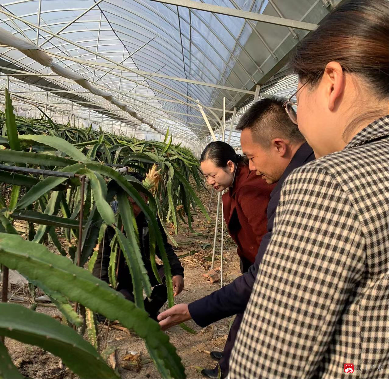 邓小菲一行来到李店镇雷楼村火龙果基地,火龙基地负责人介绍了当前雷楼村火龙果基地产业基础设施、种植模式、上市批次、市场竞争力、收益结构等基本情况。她强调火龙果要走入北上广,走高端市场路线,一定要在绿色有机上下功夫,采用人工除草、蜜蜂授粉,质量向对高标准、高品质对标,打造李店镇特色水果产业。