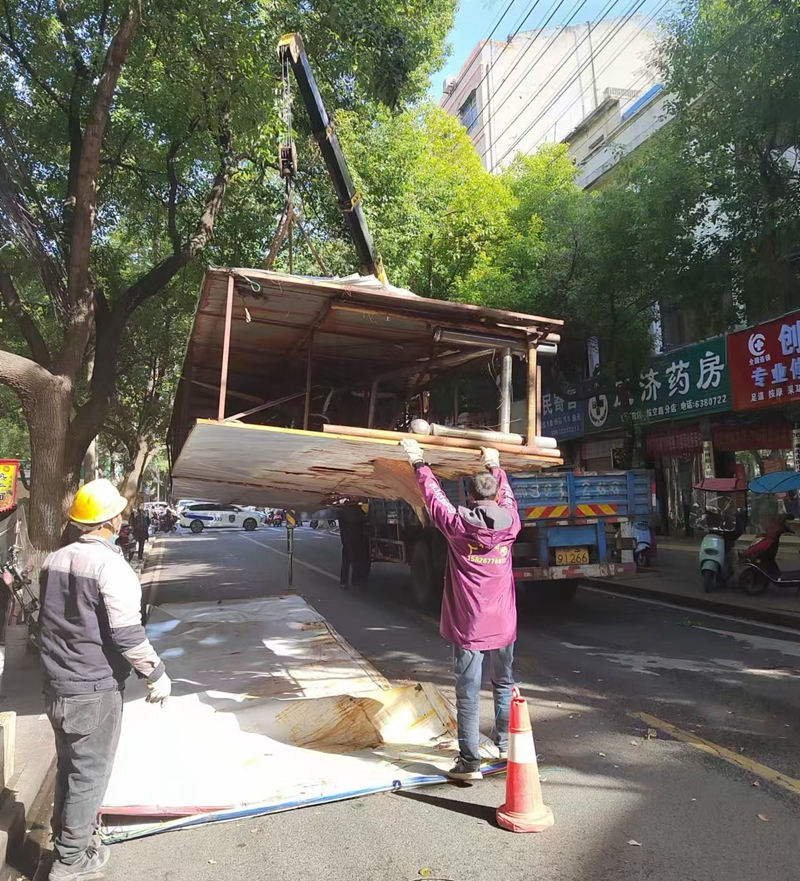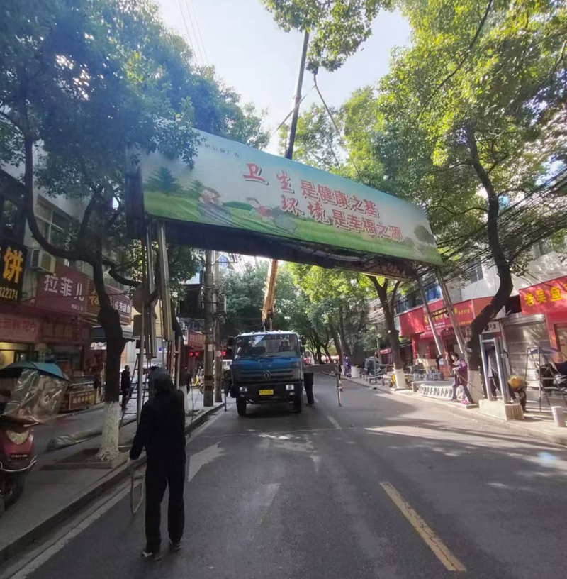 近日,市城市管理执法局直属大队组织开展拆除行动。在多方协作配合下,历经数小时奋战,5处跨街龙门架广告牌被成功拆除。安全隐患排除了,道路畅亮了,得到商户及行人的连连点赞!
