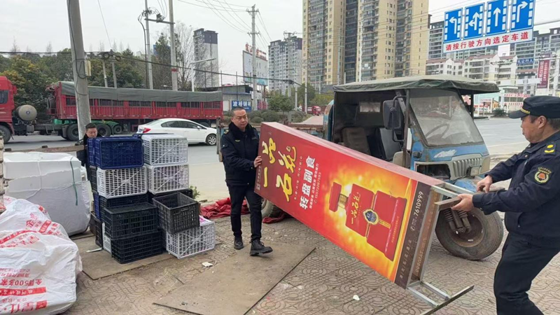 在整治行动中,执法人员对十长公路沿线违规设置的站立式广告牌、破损横幅等进行了集中清理,累计取缔各类广告牌30余块。同时,针对路边生活垃圾、建筑垃圾乱倾倒问题,联合社区、物业开展专项整治行动,清理生活垃圾、建筑垃圾10余吨,有效改善了环境卫生状况。