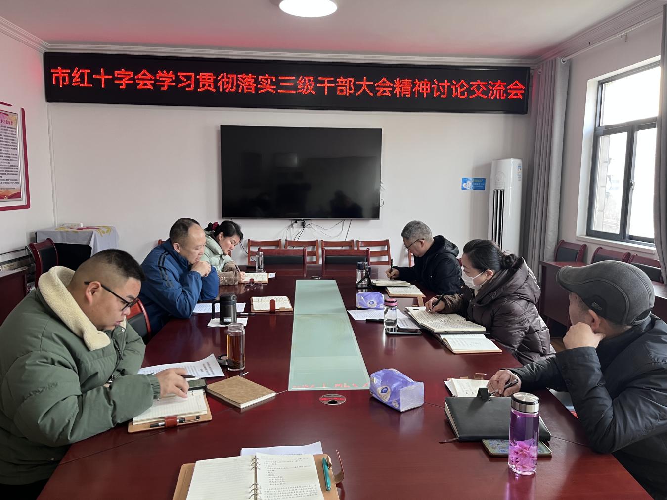 为深入学习贯彻落实全市提升发展能级助力支点建设暨2025年三级干部大会精神,3月6日,广水市红十字会结合“周周学”活动,组织全体机关干部开展学习贯彻落实三级干部大会精神讨论交流,将会议精神与本部门工作实际和业务职责紧密结合,推动红十字会各项工作再上新台阶。
