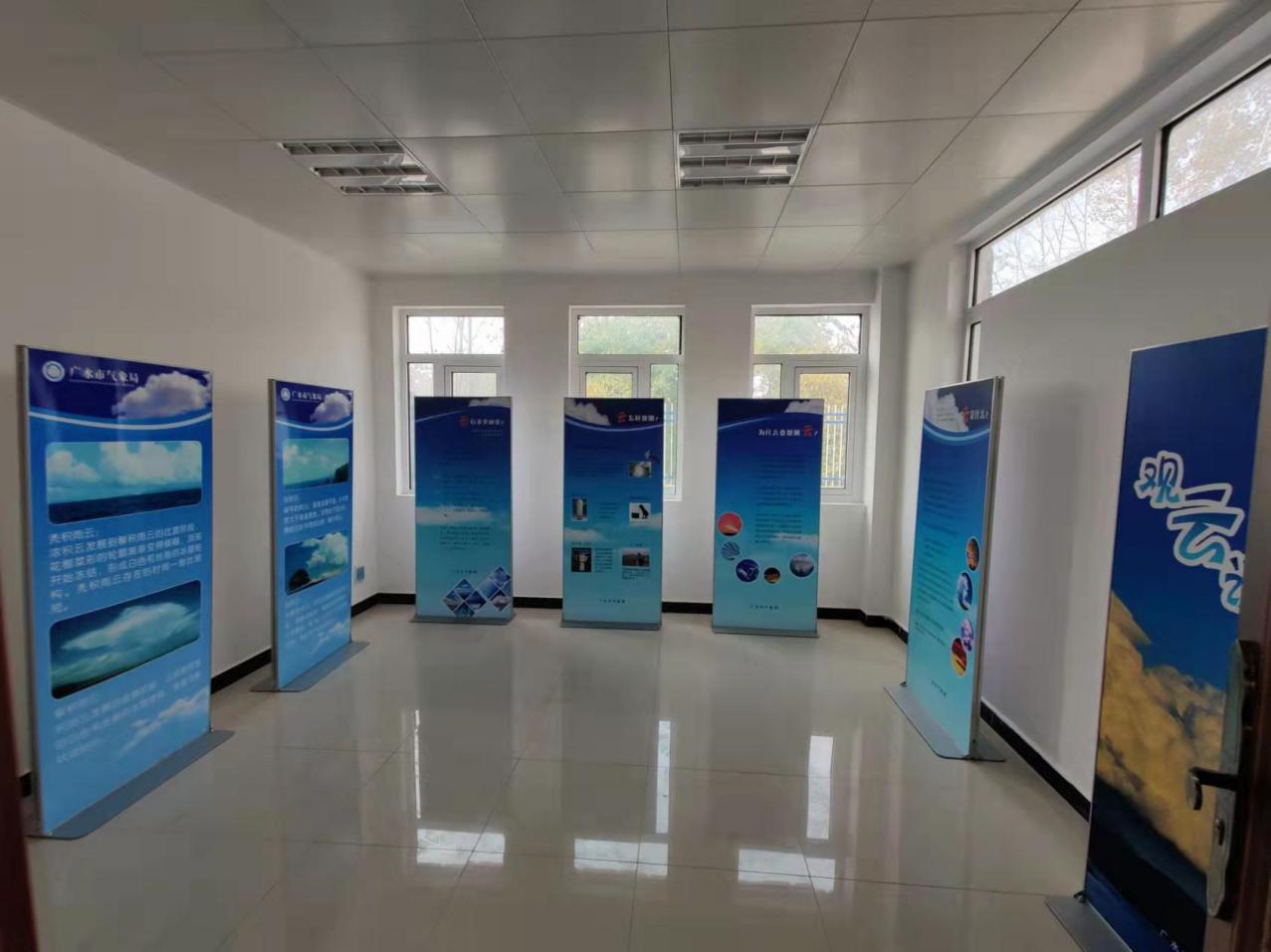 广水市气象科普馆总面积为995平方米,包含气象观测站的“观云识天”气象科普馆(室内100平方米、室外625平方米)、“人工影响天气”科普馆(160平方米)和气象预警中心楼内“防灾减灾”气象科普馆(110平方米)。主要以墙画、展板、气象仪器实物等方式,生动、形象、直观的普及气象综合观测、气象预报预测、气候与气候变化、气候资源开发利用以及气象防灾减灾等知识,为广水民众了解、熟知气象科普知识提供崭新的平台。