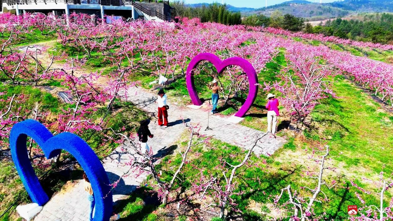 阳春三月,郝店镇铁城村的千亩桃园迎来了盛花期,漫山遍野的桃花竞相绽放,美艳动人,将整个村庄装点得如诗如画,吸引了大批游客前来观赏。