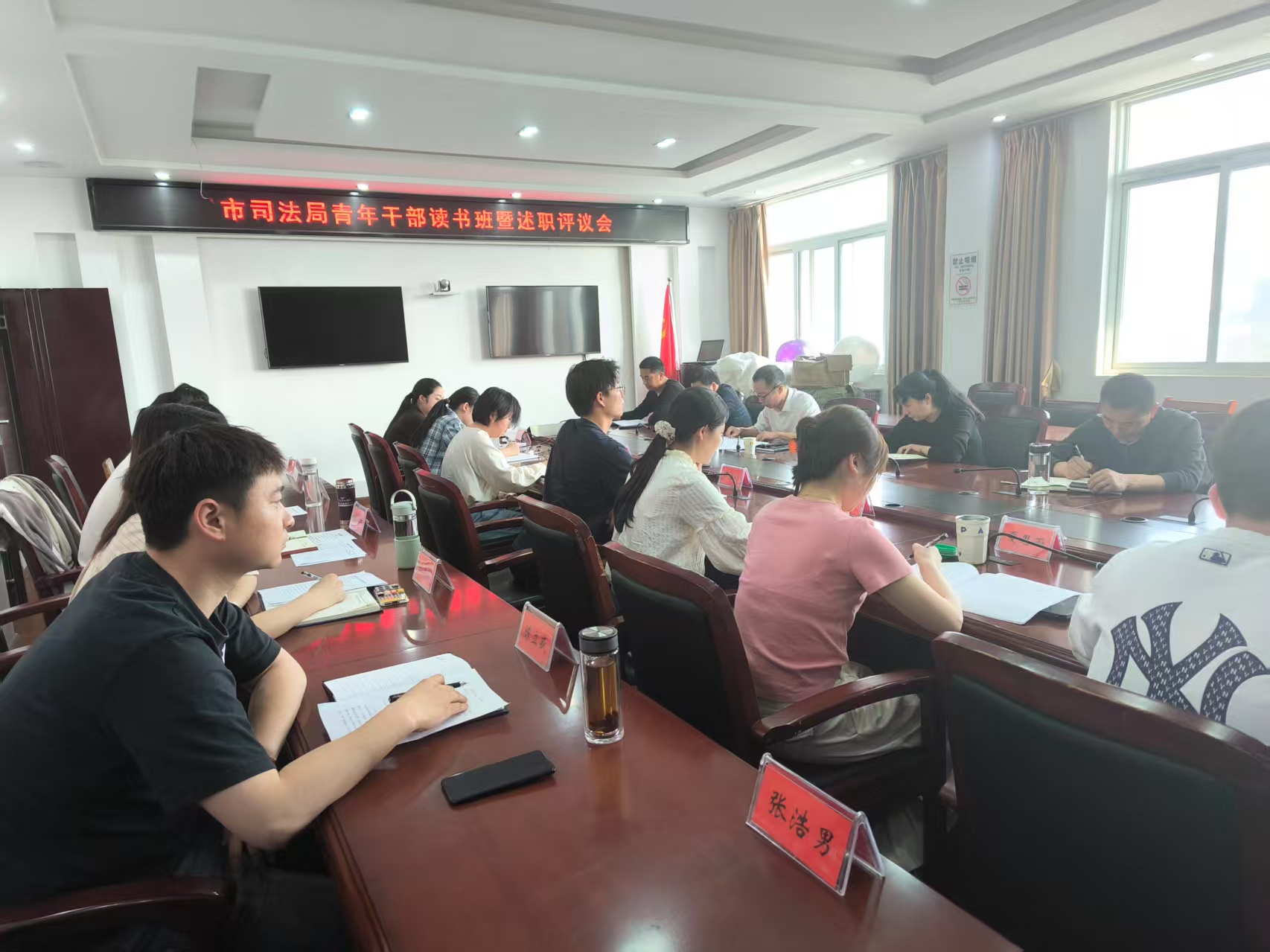 为加强市司法局年轻干部培养,营造比学赶超的浓厚氛围,3月26日下午,市司法局召开青年干部读书班暨述职评议会,并邀请年轻干部帮带导师共同评议。