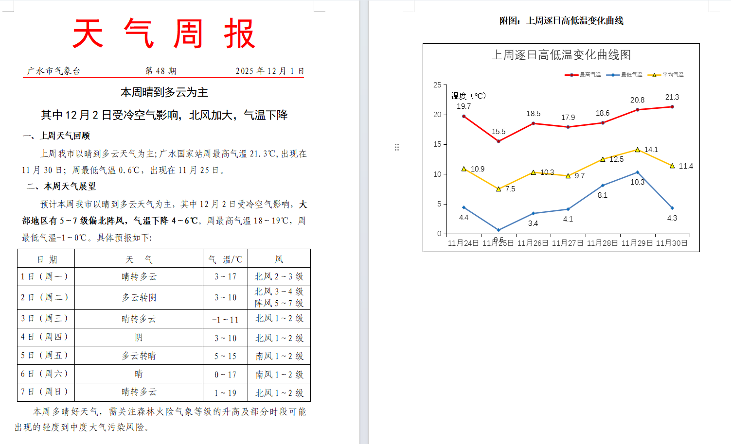 本周晴到多云为主 其中12月2日受冷空气影响气温下降