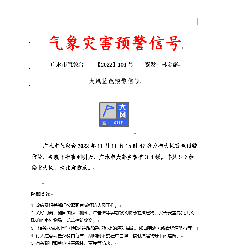 大风蓝色预警信号